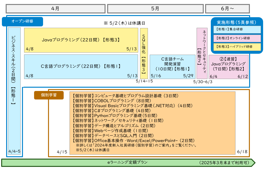 「オープン研修」の教育コンテンツにつきましては、「2024年度新入社員研修のご案内」でご確認ください。